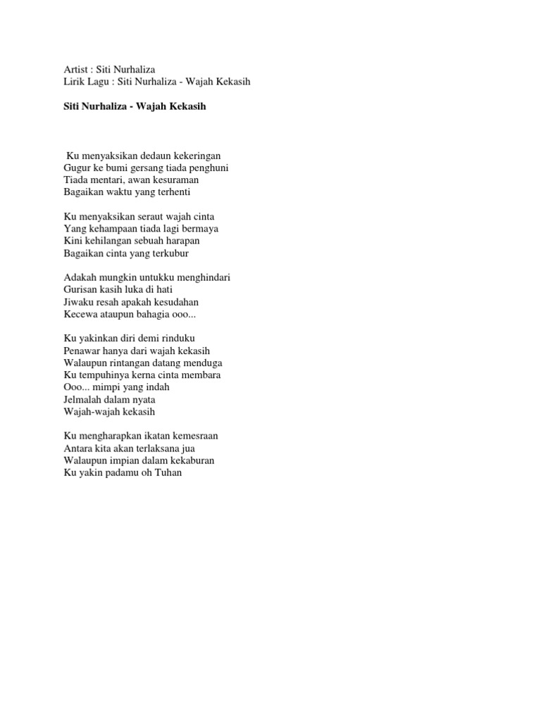 Lirik Lagu Siti Nurhaliza Wajah Kekasih Wallpaper